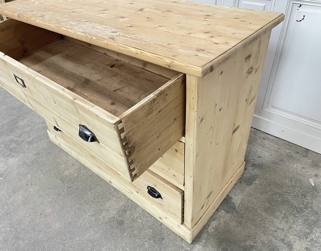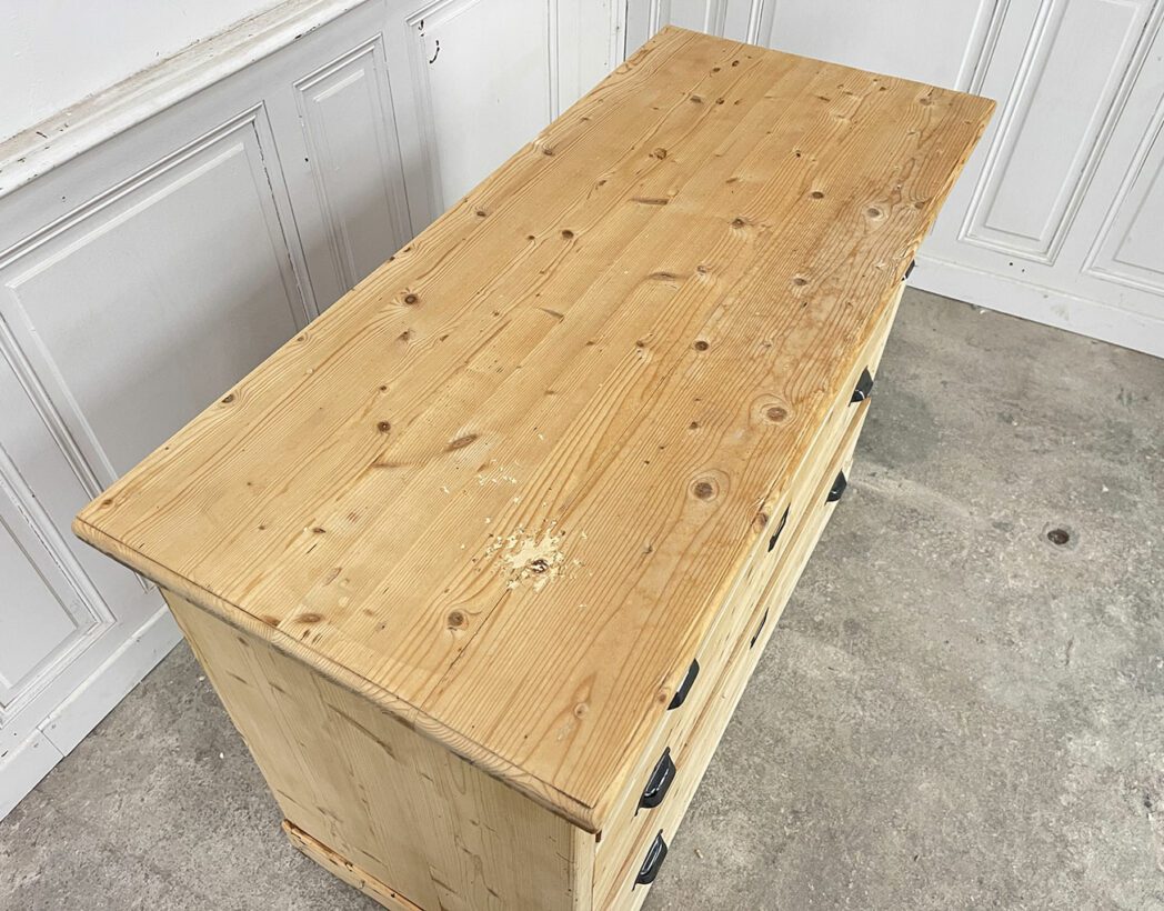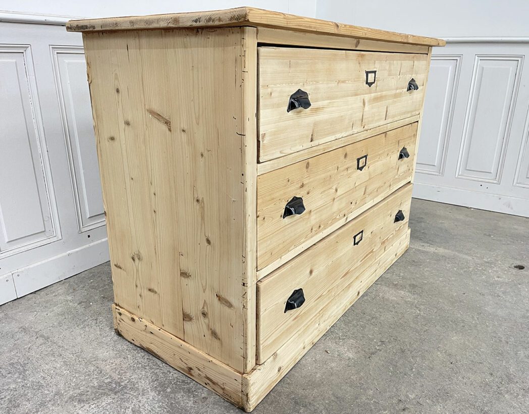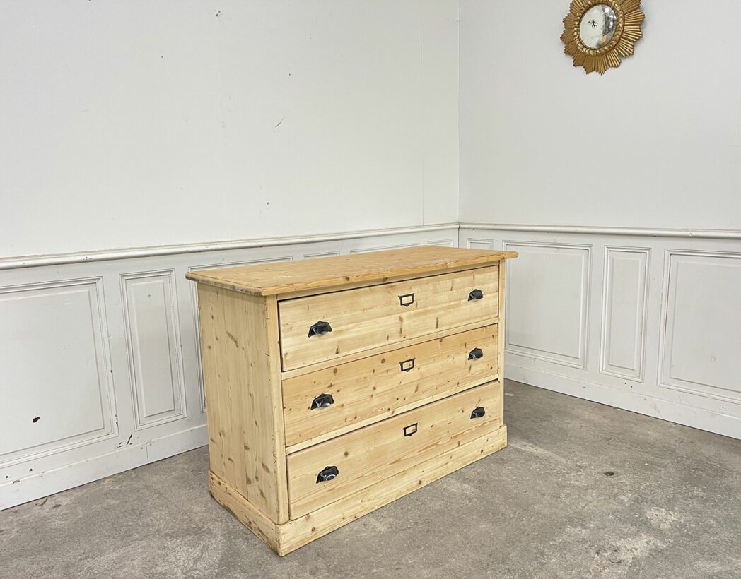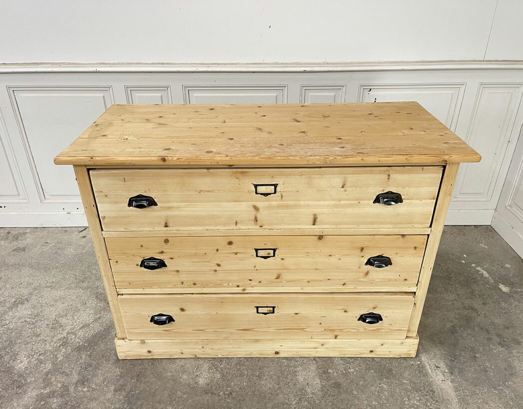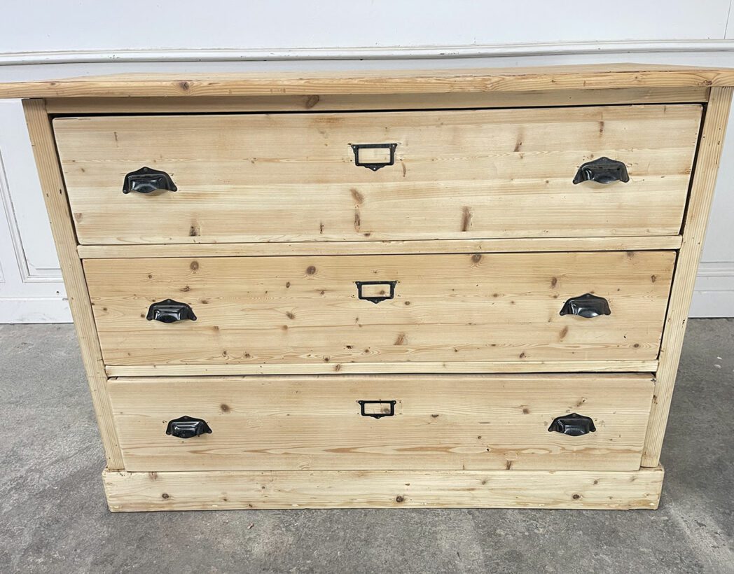 Coup de cœur de l’atelier cette semaine pour cette jolie commode années 1940 en bois de sapin dotée de 3 tiroirs à poignées coquilles d’origine.
