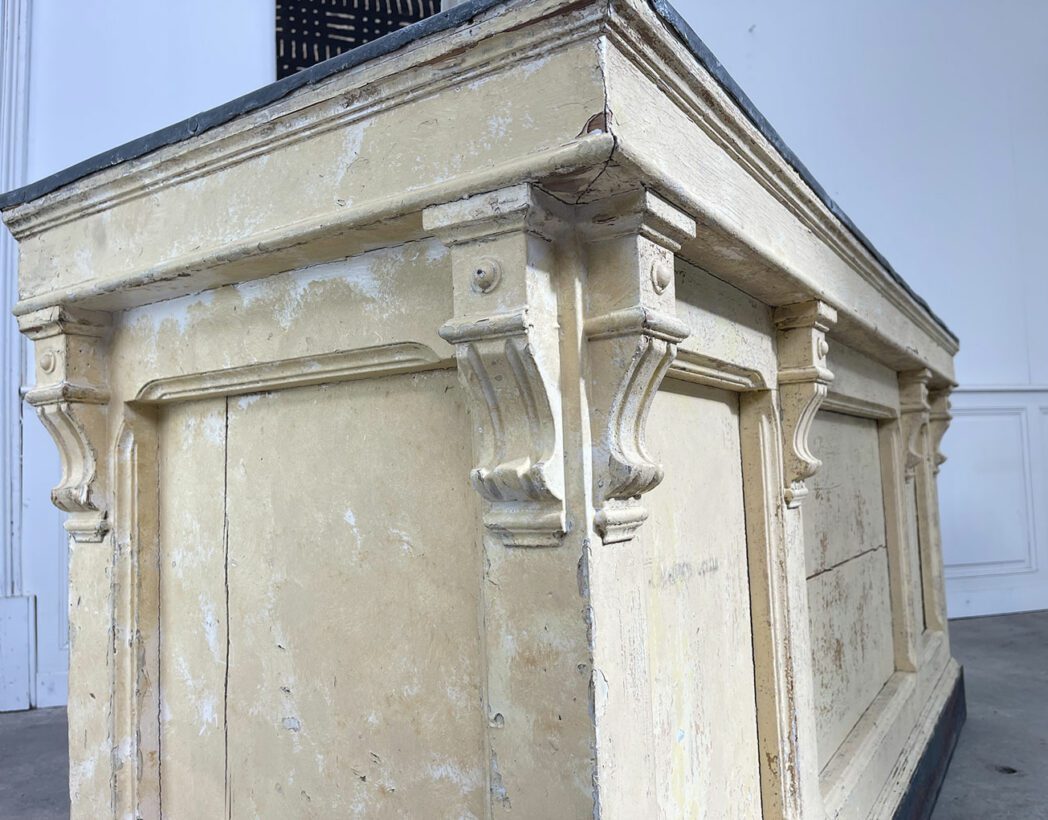 Coup de cœur de l’atelier cette semaine pour ce comptoir de magasin estampillé datant des années 1900.