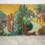 Composition idyllique, colorée, cette vaste toile vintage a été peinte à l’huile et est montée sur châssis de bois.