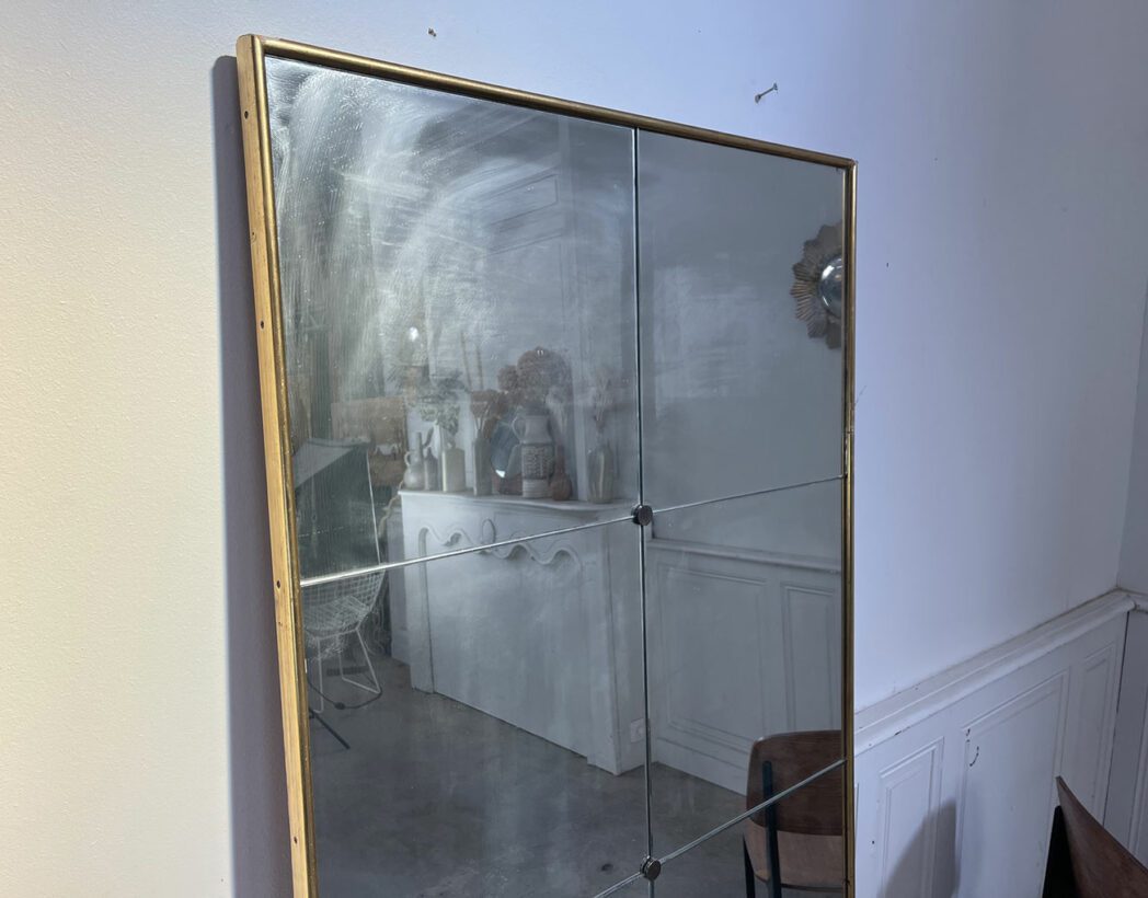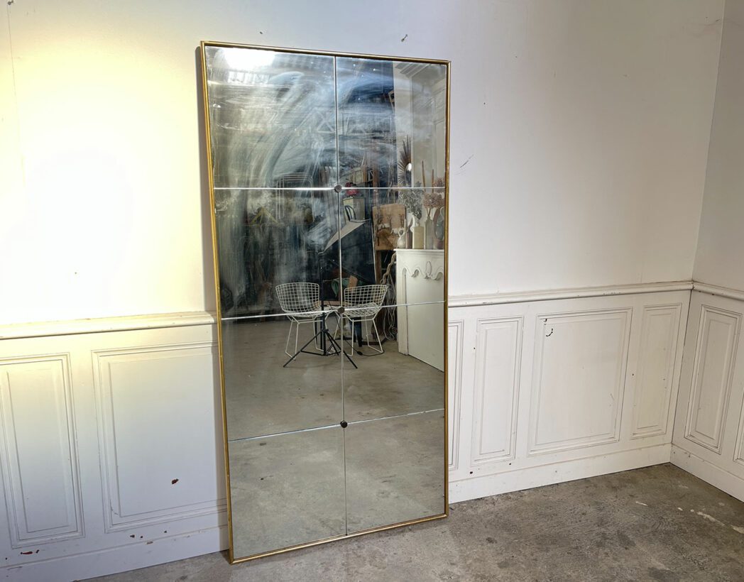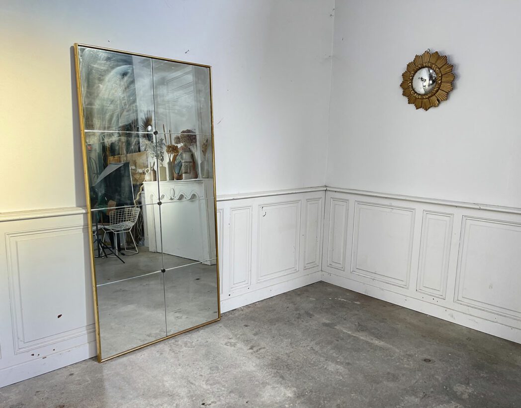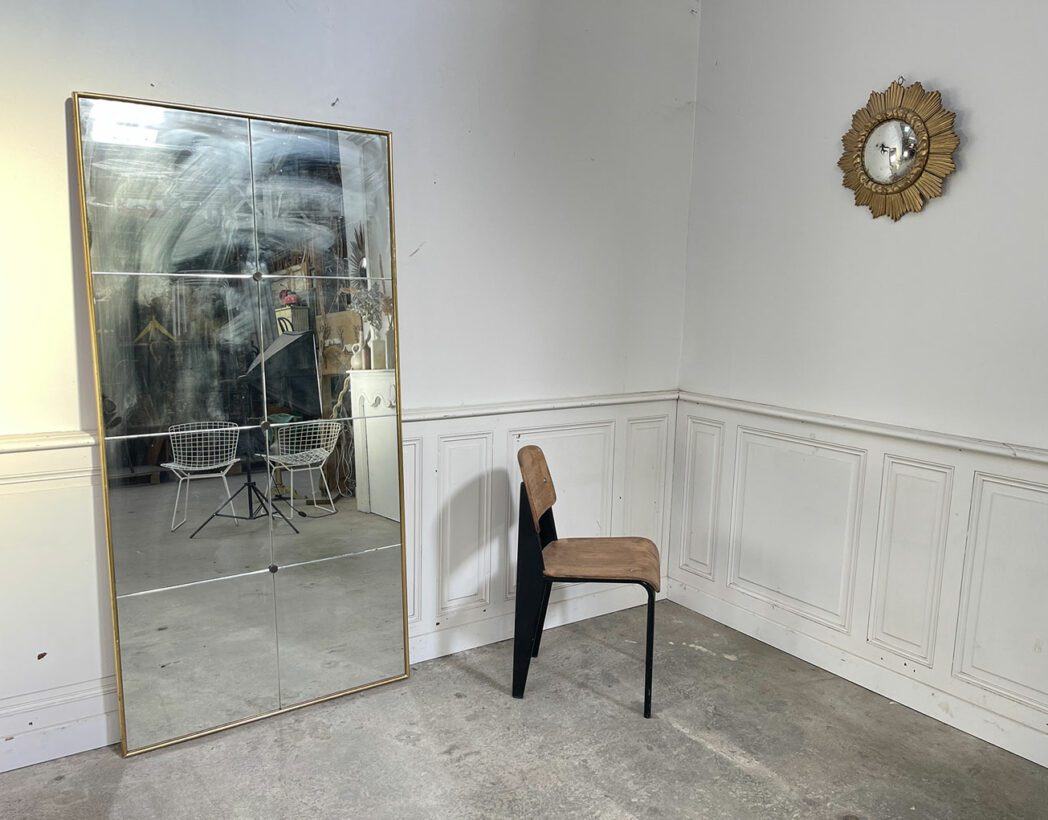 Particulièrement élégant, ce miroir de style art déco doté d’un cadre en bois doré sublimera une déco de type industriel, bohème, … Il se compose de 8 miroirs assemblés en un, type miroir à effet verrière.
