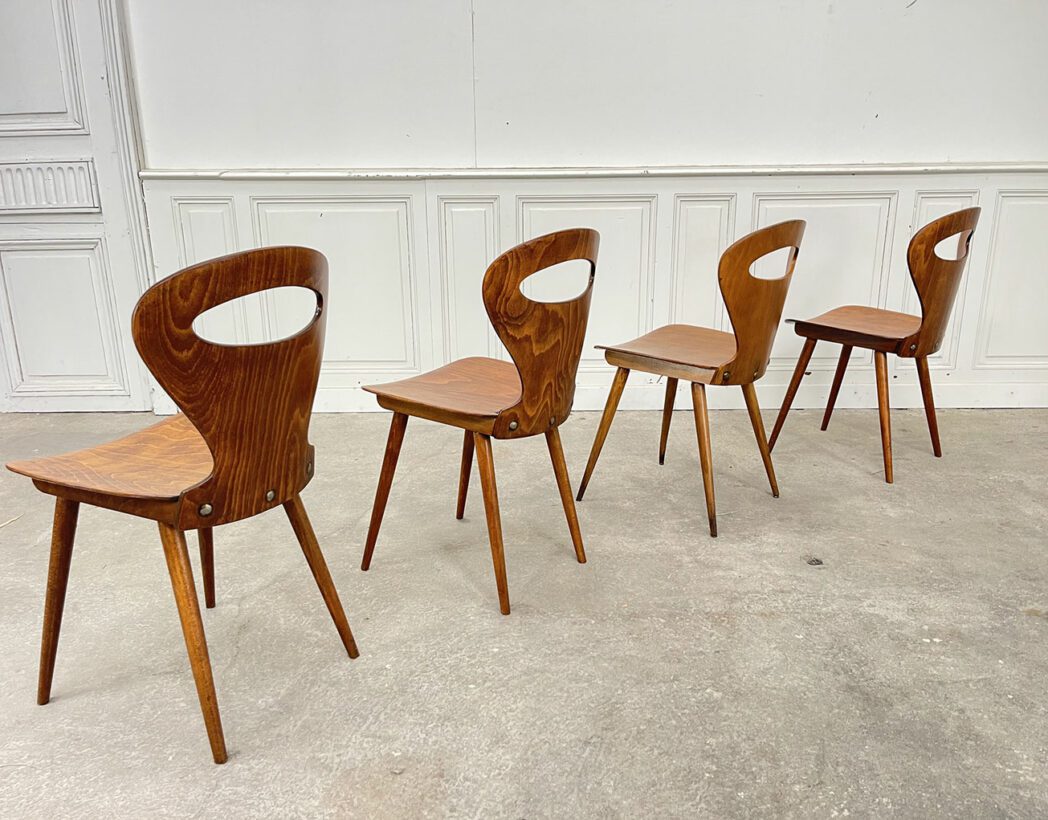 Ensemble de 4 chaises bistrot Baumann modèle fourmi années 60