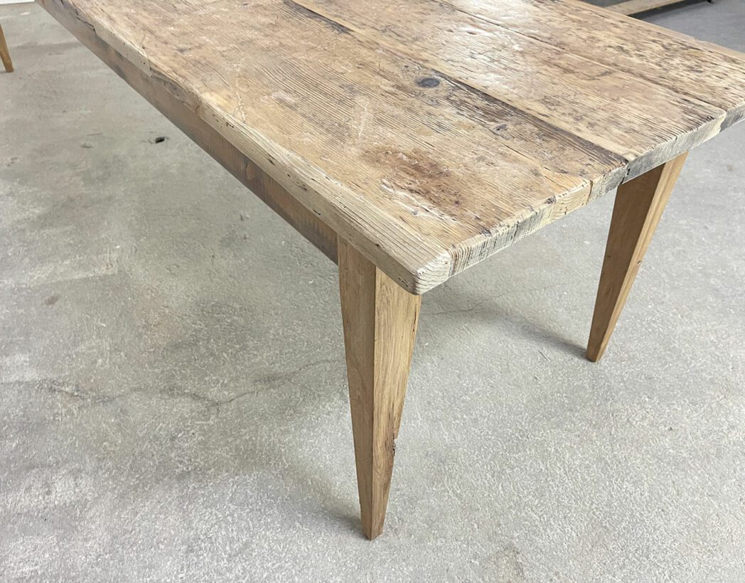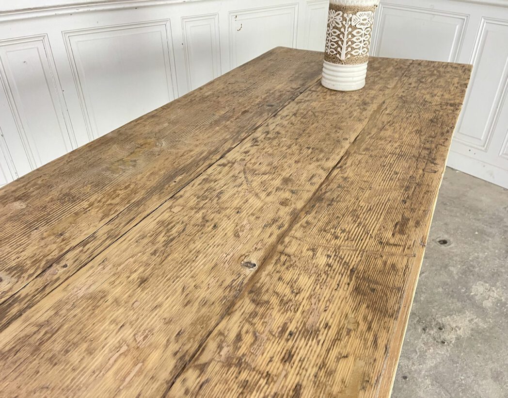Belle et longue table de ferme en bois de pin et piètement en chêne. Entièrement restaurée dans notre atelier, elle date des années 1950 et saura trouver sa place dans tous types d’intérieurs. Nous avons conservé sa belle patine miel d’origine.