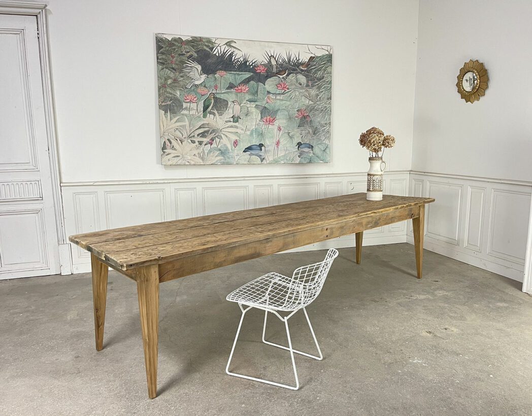 La teinte chaude du chêne, le côté rustique de ses lignes : les atouts de cette grande table vintage sont nombreux ! Veuillez noter des traces d’usure, signes du temps, sur le plateau notamment (cf. photos).