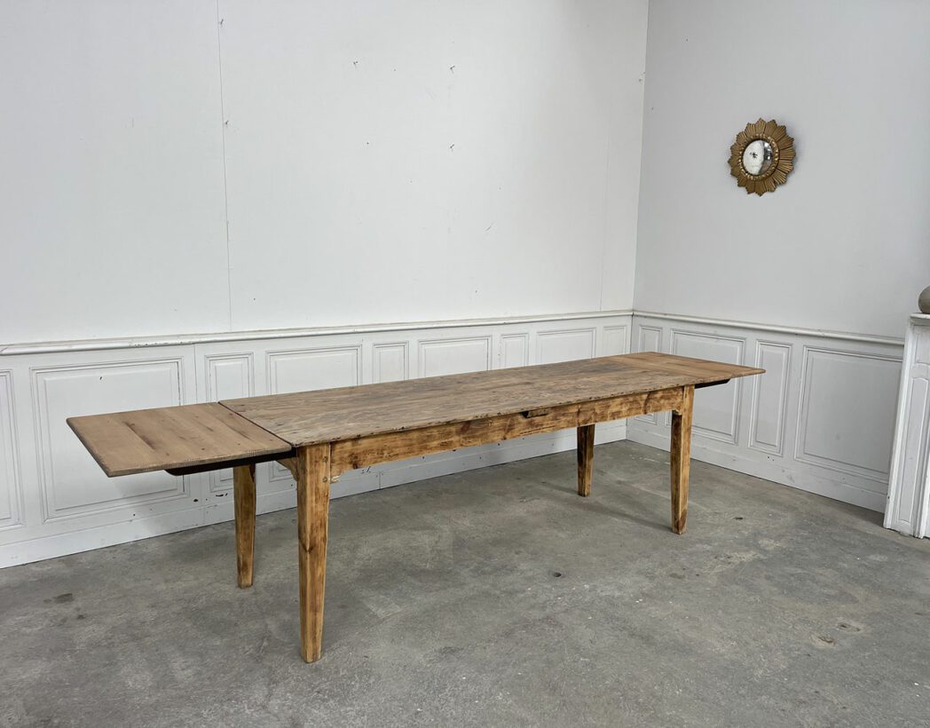 D’une longueur de 204 cm, elle peut passer à 304 cm grâce aux rallonges d’origine, pouvant ainsi accueillir jusqu’à 10 à 12 convives.